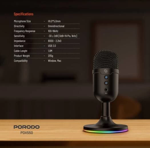 • 1× ميكروفون Porodo USB