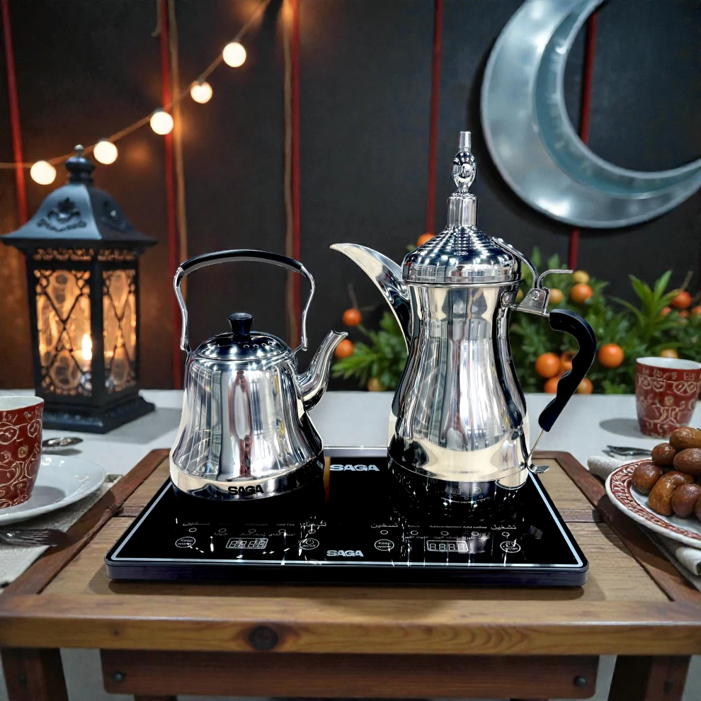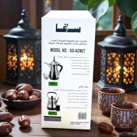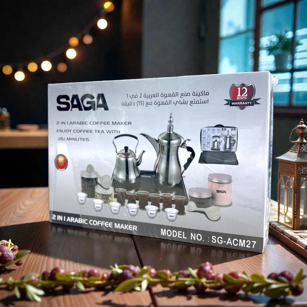 استمتع بتحضير القهوة العربية والشاي بسهولة مع ماكينة ساجا 2 في 1 بقوة 1600 واط. تصميم يجمع بين الطابع التقليدي والأداء الكهربائي السريع، مثالية للمنزل واستقبال الضيوف.