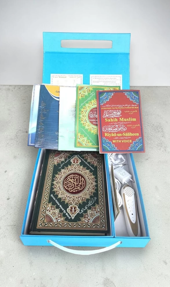 📖🖊 قلم قراءة القرآن مع مصحف كبير وترجمة صوتية – 24×17 سم