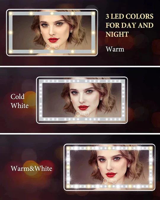 مرآة سيارة بإضاءة LED للواقي الشمسي – مرآة مكياج قابلة للشحن باللمس
