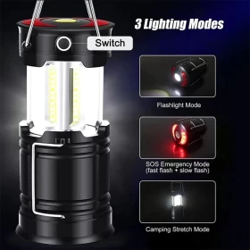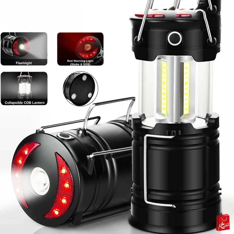 احصل على إضاءة موثوقة في أي مكان مع فانوس LED للتخييم قابل للشحن. يتميز بخاصية الطاقة المزدوجة حيث يعمل عبر USB أو 3 بطاريات AA، مما يجعله مثالياً للتخييم والطوارئ والاستخدام اليومي.