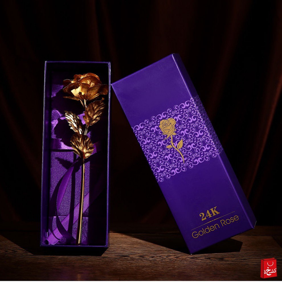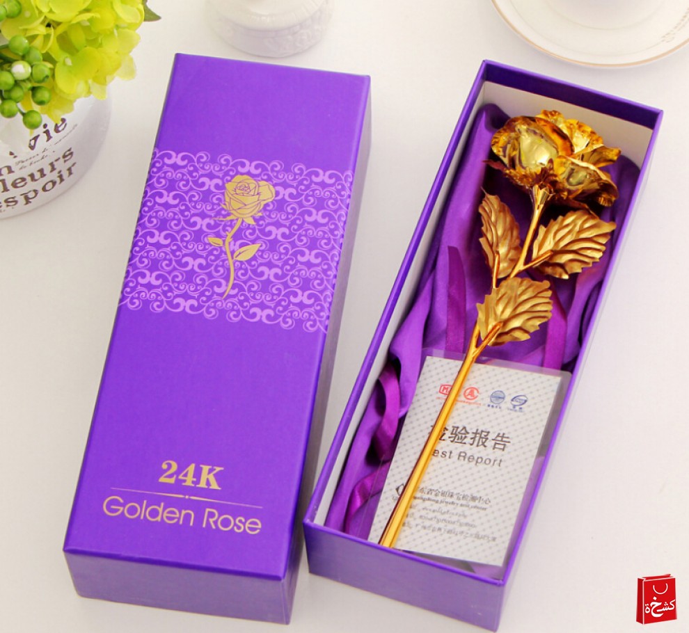 هدية عيد الحب - الوردة ملون المطليه باللون الذهبي