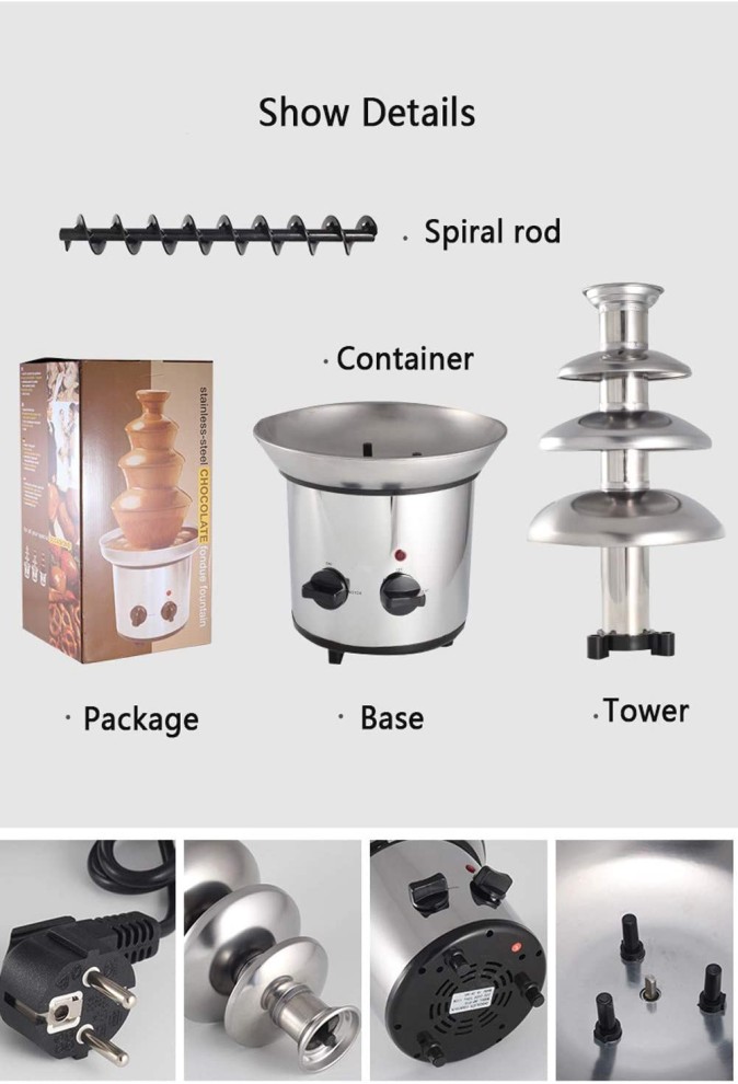 Create magical moments and delicious treats with the Chocolate Fountain Machine—the perfect addition to parties, weddings, family gatherings, and special occasions. Whether you’re enjoying a cozy night at home, hosting a fun party, or adding a touch of elegance to a high-end event, this stainless steel chocolate fondue fountain will make every occasion more exciting and delicious. Easy to use and clean, it allows you to dip fruits, marshmallows, cookies, and more for a rich, indulgent chocolate experience with family and friends!