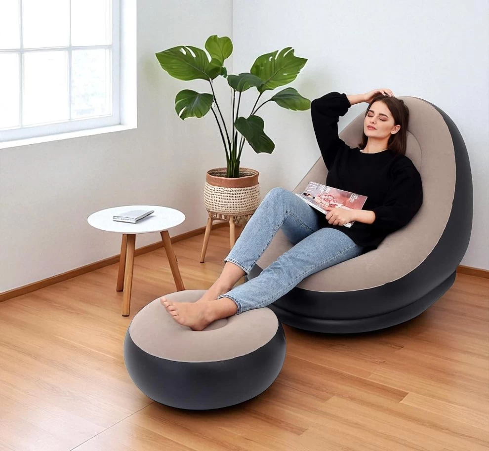 🛋️ Inflatable Lazy Sofa Chair with Footstool – Ergonomic, Portable & Ultra Comfortable