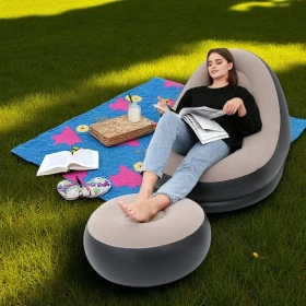 Experience next-level relaxation with this soft and comfortable inflatable lounge chair, designed with an ergonomic backrest and a matching round footstool. Whether you're relaxing indoors or outdoors, this compact, easy-to-inflate sofa will quickly become your go-to spot for comfort and convenience.