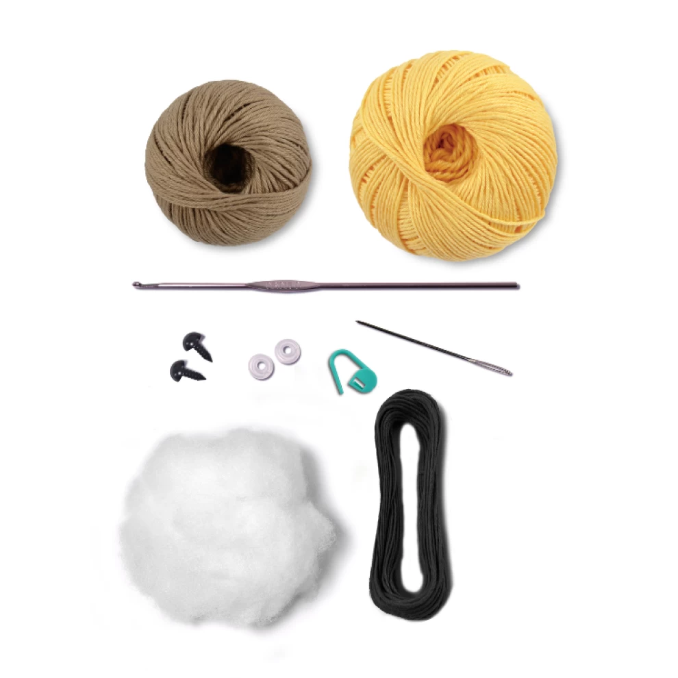 All Circulo kits come in a frosted resealable bag and contain yarn, crochet hook, tapestry needle, safety eyes, stuffing, stitch marker and pattern.