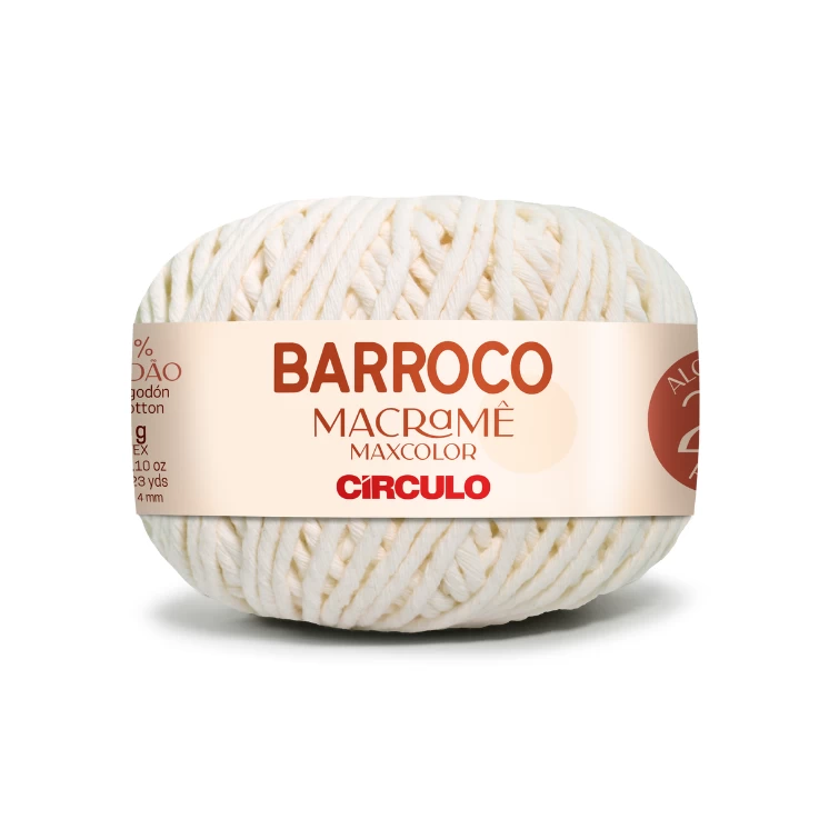 Circulo's Barroco Macramé is a single-ply, 4mm, soft and plush string made with 100% Brazilian virgin cotton intended for knotting, knitting, crochet, weaving and other fibre art projects.