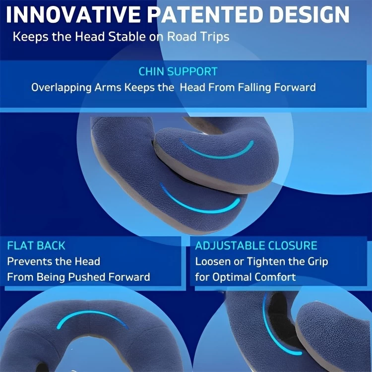 Chin & Neck Support: Patented curved design prevents head from falling forward, supporting the chin, neck, and sides of the head.