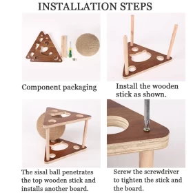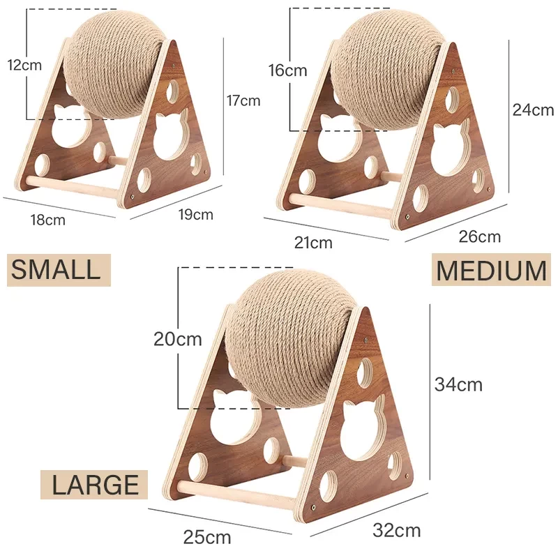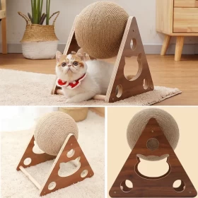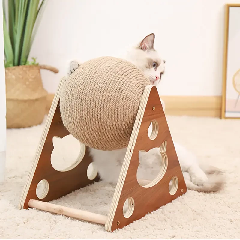 Keep your cat active and your furniture safe with this stylish solid wood scratching ball. Wrapped in natural sisal rope, it's perfect for scratching, climbing, and interactive play—ideal for cats of all sizes and ages.