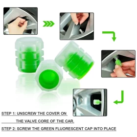 • 2 × Glow Tire Valve Light Caps (Green)