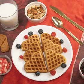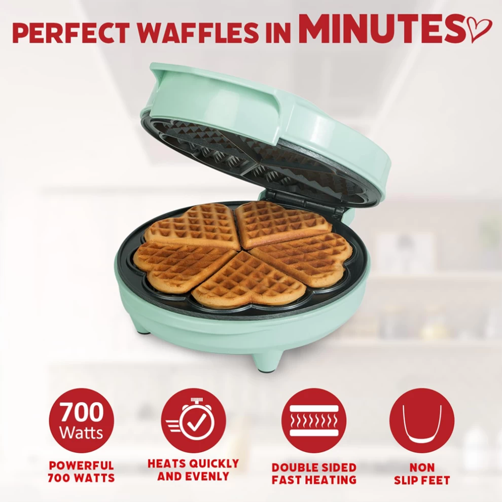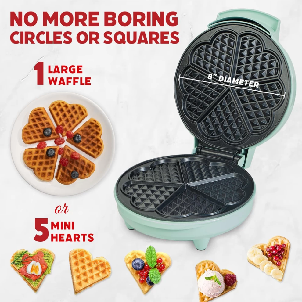 Make five delicious heart-shaped waffles in minutes for everyday meals! No more boring circles or squares; our iconic heart shaped waffle maker lets you spread the love with melt-in-your-mouth waffles every time