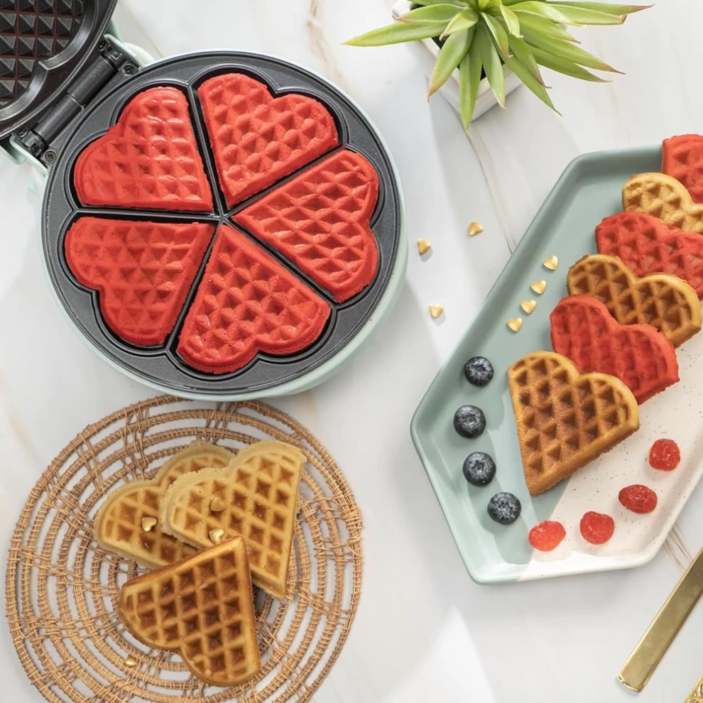 • The sleek and trendy style of this 5 Heart-Shaped waffle maker will easily match any type of kitchen decor. It is also the best gift idea for many occasions, such as birthdays, weddings or new home gifts
