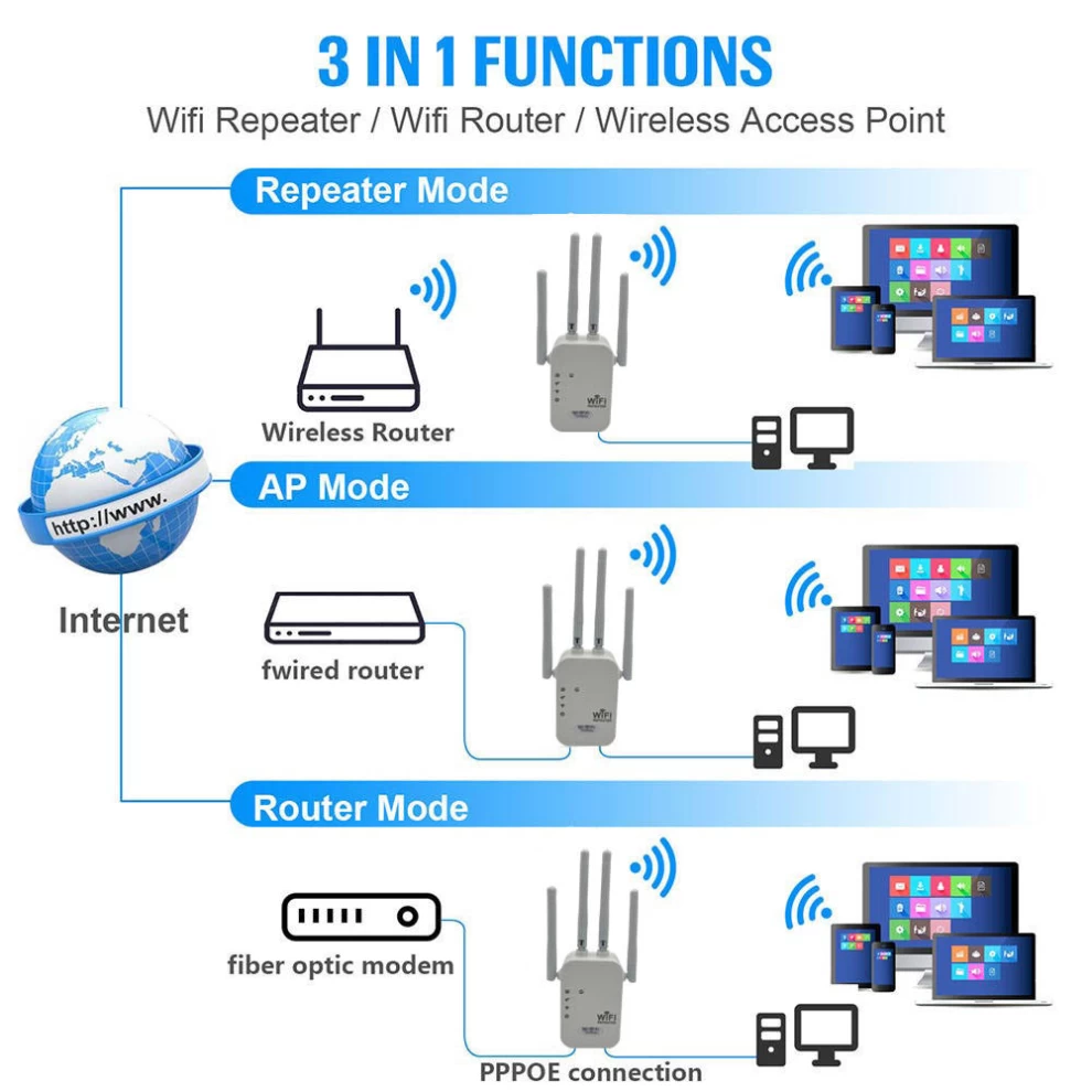 • Signal Booster Device: This WiFi range extender can help amplify your wifi, extend the signal to a greater distance, and eliminate wifi dead zones so you can use the network in any area of your home. You don't have to worry about weak signals due to distance, walls, and floors.