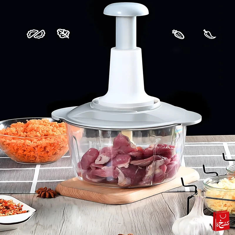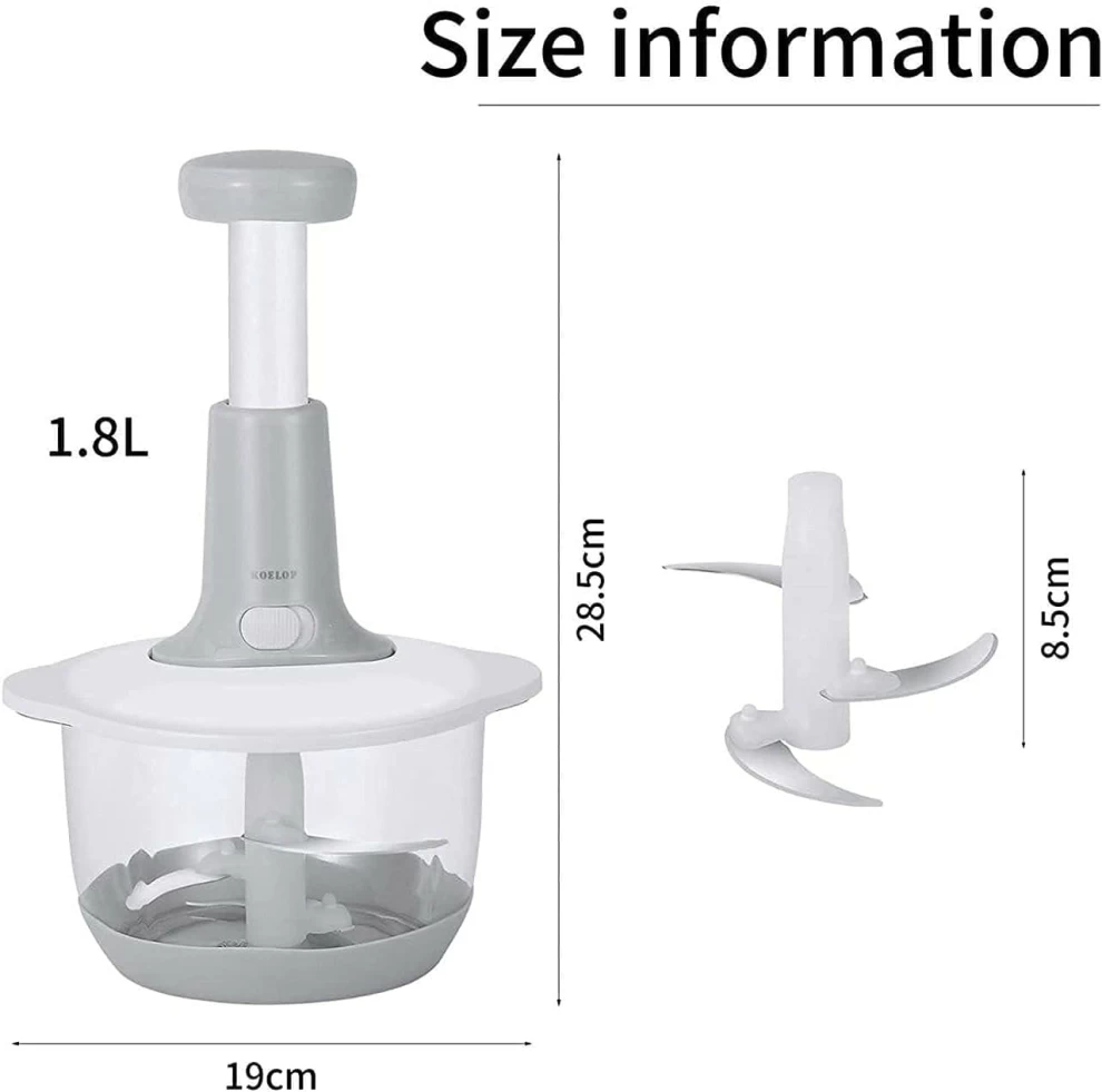 • EXTRA LARGE CAPACITY: 2 Pints Capacity. Features a sharp stainless steel chopper blade, anti-skid bowl, it's easy to use with one hand operation - the pump handle