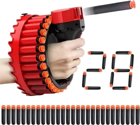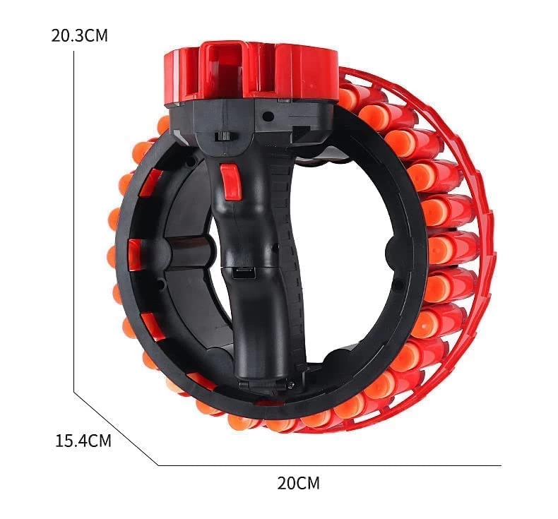 • MicroShots Firing Toy Blaster, breaking the traditional appearance, the ring hand design is convenient for one-handed operation. Loop toy gun a circle of 28 rounds, can be continuously rotated to launch, creating more fun.