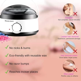 No Strips Needed – Hard wax beads melt, apply, and pull off without strips for less mess and less pain.