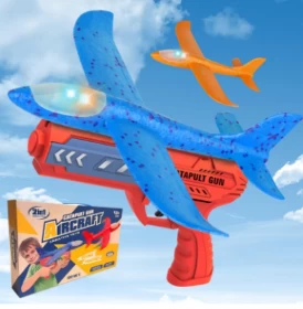 LED Light Airplane Toy with 2 Flight Modes Launcher | Outdoor Throwing Foam Shooting Game for Kids