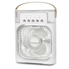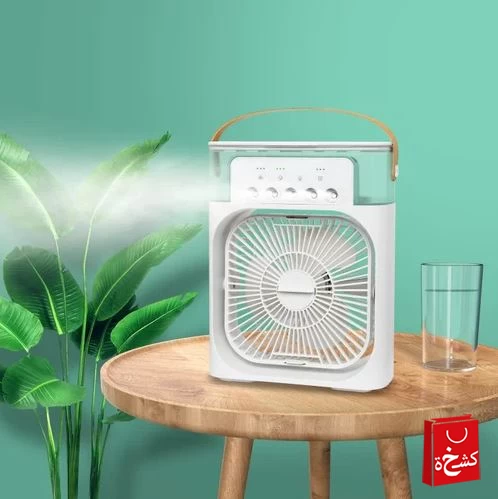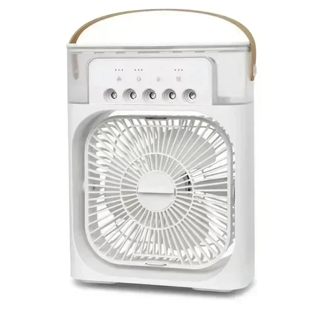 This smart little air cooler combines a desk fan, mini air conditioner, misting humidifier, and cozy LED light — all in one compact device!
