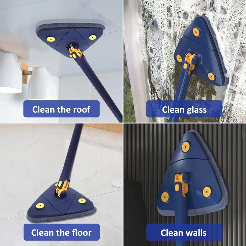 This innovative triangular mop with a 360° rotating microfiber head is designed to reach the toughest spots — under sofas, along wall edges, ceilings, windows, and more. Perfect for households, offices, and anyone who wants faster, easier, and deeper cleaning without bending or wet hands.