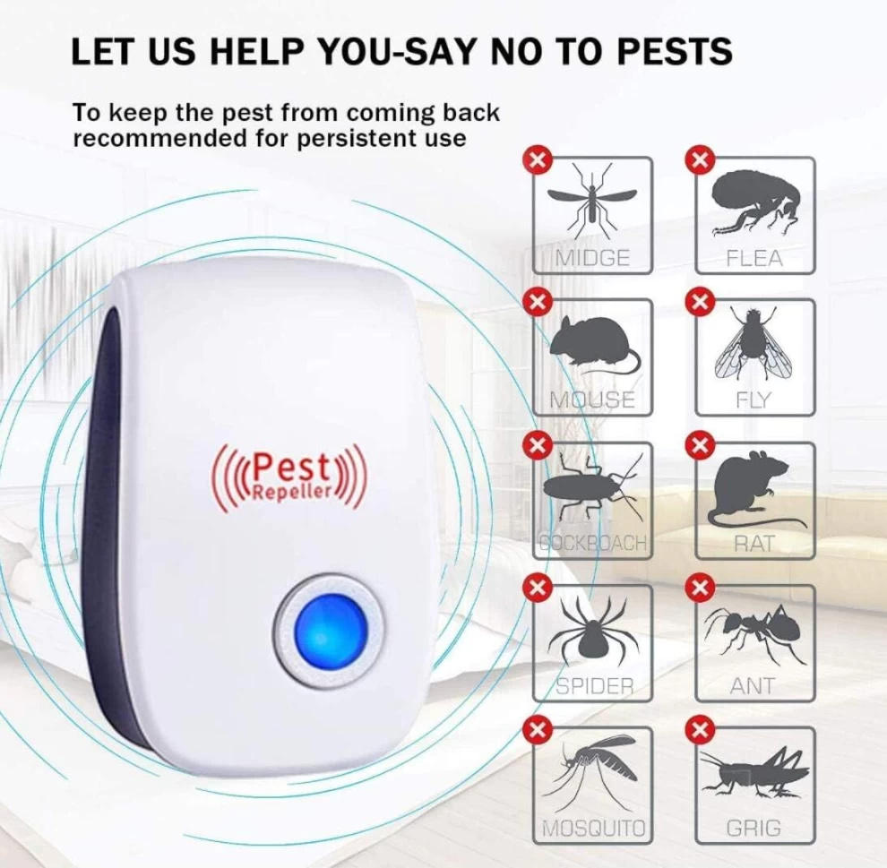 Say goodbye to pests with the Ultrasonic Pest Repeller — the safe, silent, and chemical-free way to protect your home. Using advanced dual chip ultrasonic technology, this device emits high-frequency sound waves that are undetectable to humans and pets, but irritating to pests like mice, cockroaches, mosquitoes, spiders, fleas, and more.