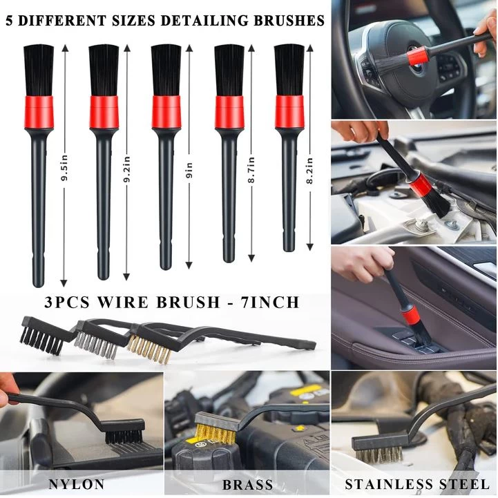 • 🖌 Detail Brushes & Wire Brushes – Includes 5 soft detail brushes for delicate surfaces and 3 wire brushes (nylon, brass, stainless steel) to tackle rust and grime in hard-to-reach spots.