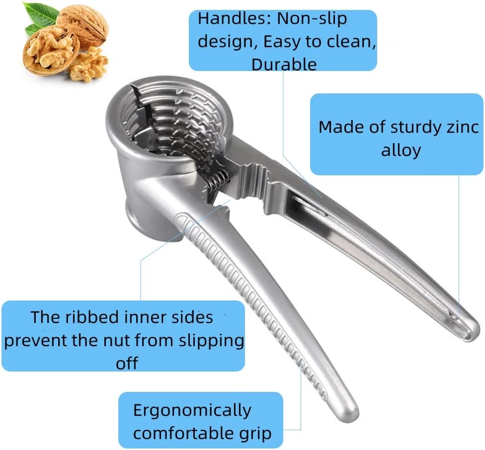 • Our walnut crackers are made of zinc alloy material which is tough and durable. The increasingly thick material is stronger and more durable than other pliers. The nut cracker will not be bent or broken during use.