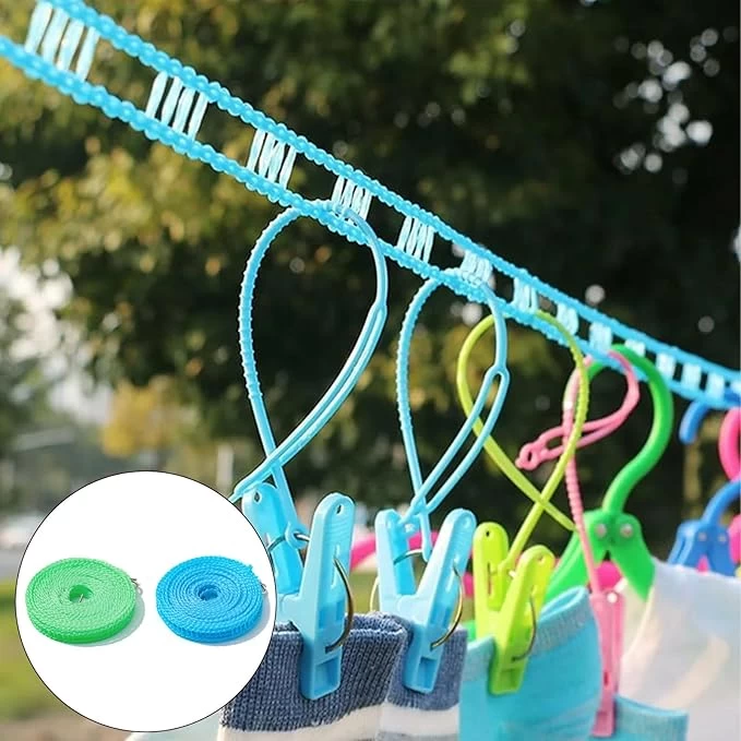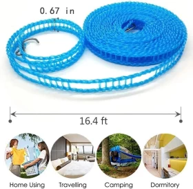 The outdoor washing line can be hung and supported anywhere. You can also hang it on two trees or on two car doors if you can't find a hanger. It is very convenient and can be removed at any time when not needed.