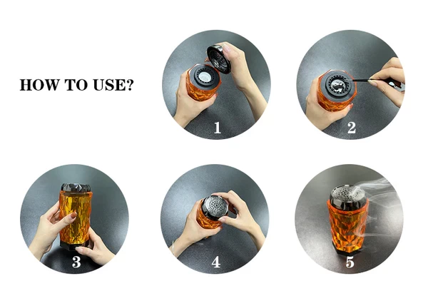 2️⃣ Open the top cover and place a small amount of bakhoor inside. 🌿✨
