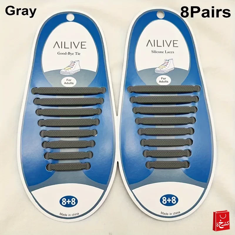 👟 1 × Set of Gray No-Tie Silicone Shoelaces (16 pcs = 8 per shoe)