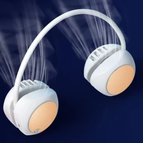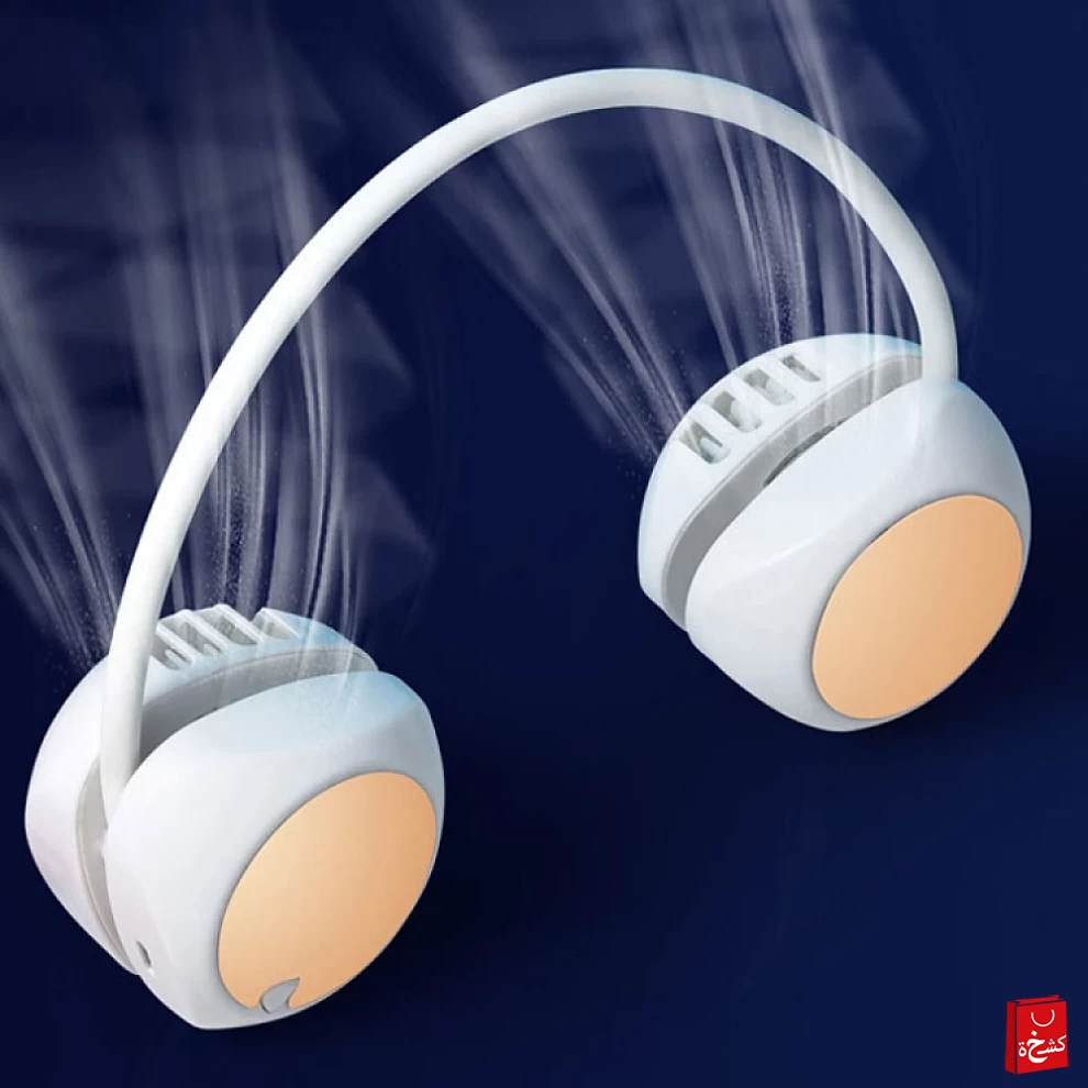 2️⃣ Wear it around your neck with fan heads pointing upward 👑🌀