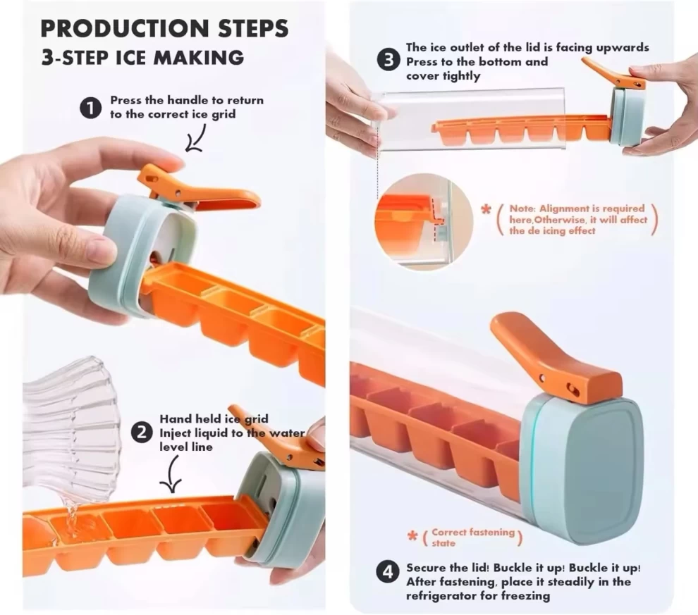 Introducing the innovative One-Handed Pressing Ice Cube Mold—a game-changer for your kitchen and beverage needs.​ 🧊💦.
