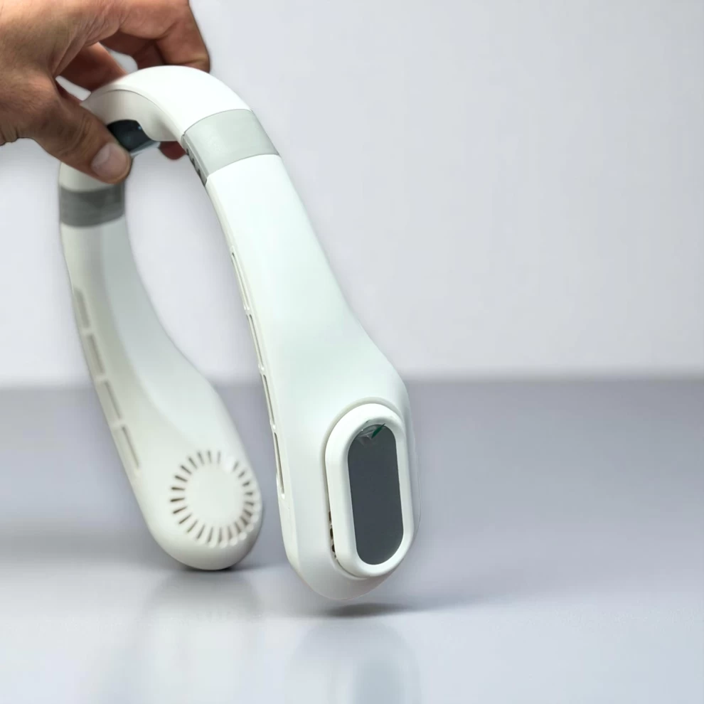 ❄️ J18 Cooling Hanging Neck Fan – Portable Bladeless Fan with Digital Display (White)