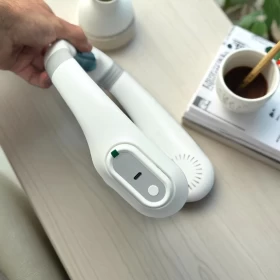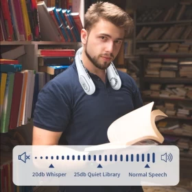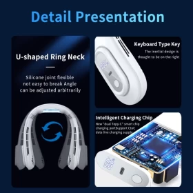Stay cool anywhere, hands-free! The J18 hanging neck fan features a bladeless design, digital display, and quiet operation – ideal for summer days, travel, and workouts.