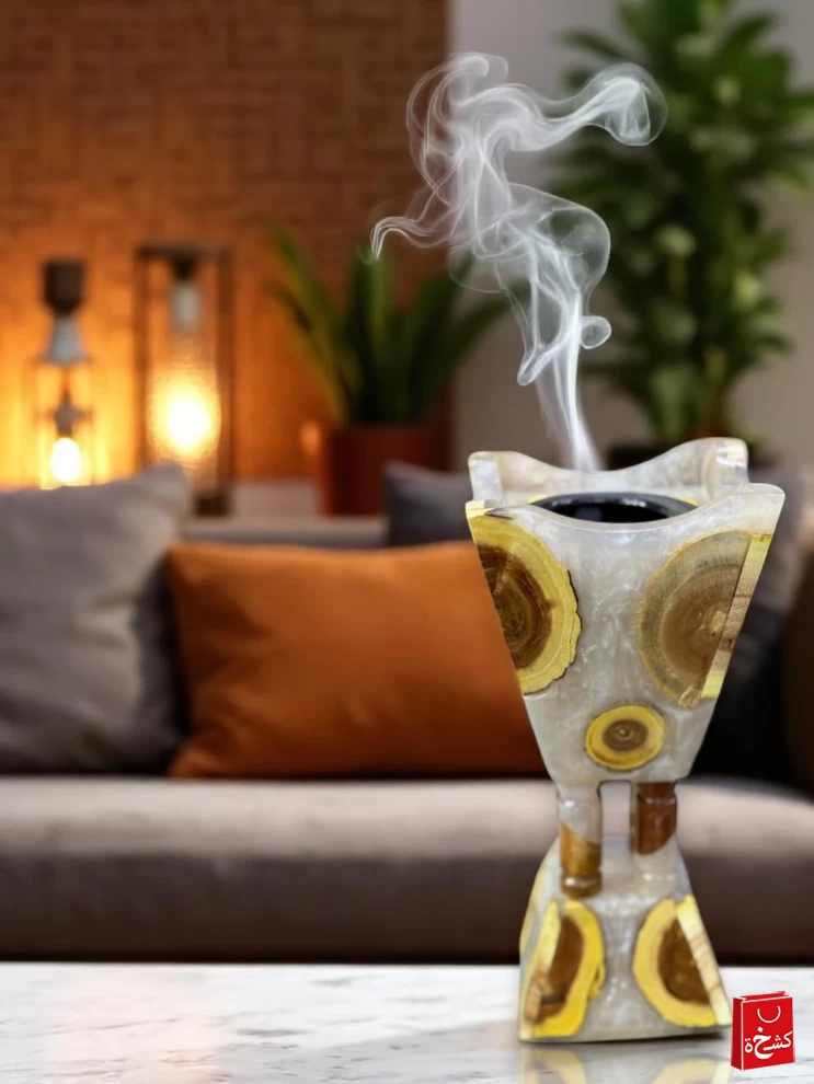 Elevate your space with this compact yet eye-catching 20cm luxury resin mabkhara. Handcrafted with intricate natural-stone patterns, it's perfect for enjoying the aroma of bakhoor, oud, or incense in style.