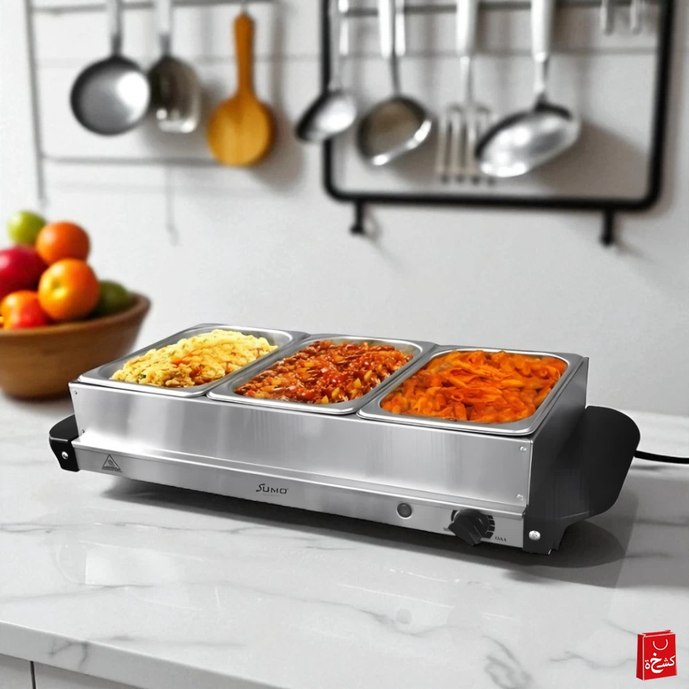 🍽️ Sumo 2-in-1 Buffet Food Warmer Tray – 3 Sections – 300W