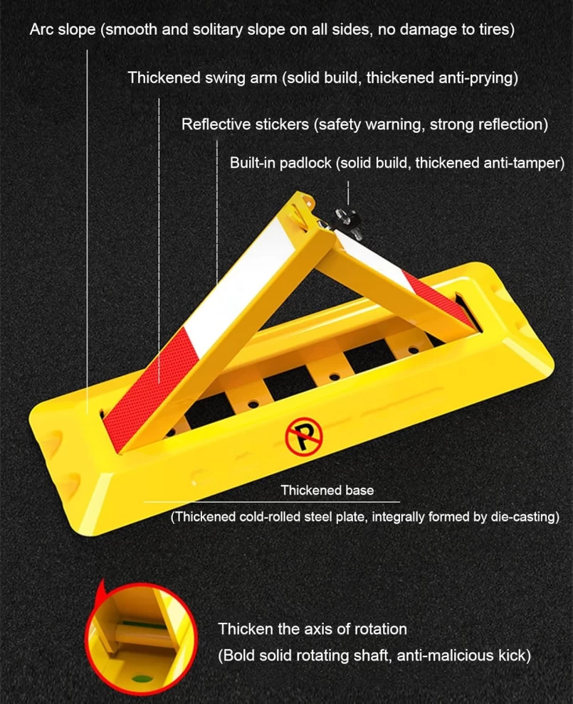 Secure your parking spot and prevent unauthorized vehicles with this heavy-duty anti-collision ground lock. Built for durability and high visibility, it's an ideal choice for homes, offices, and private lots.