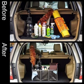 Keep your car neat and clutter-free with the Car Boot Organizer (3 sections). Designed to maximize trunk space, it’s perfect for groceries, tools, sports gear, travel essentials, and more. Durable, foldable, and easy to use – the ultimate solution for an organized car.