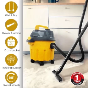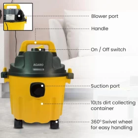 Keep your home spotless with the AGARO Rapid Vacuum Cleaner, engineered for powerful wet and dry cleaning. With a 1000W motor and a 10-liter capacity, it offers excellent suction power for dust, debris, and liquid spills. Ideal for homes, offices, and workshops, it combines performance, durability, and convenience in one compact unit.