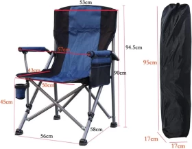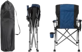 Relax anywhere in comfort with the Folding Camping Chair, designed for outdoor adventures, picnics, camping, and fishing trips. Its padded high backrest, ergonomic armrests, and built-in cup holder offer superior comfort and convenience. The sturdy steel frame and durable Oxford fabric ensure long-lasting use, while the foldable design and carry bag make it easy to transport and store.