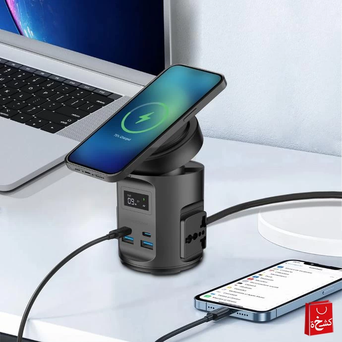 Charge your devices efficiently with the Powerology MagSafe Power Hub, designed for MagSafe-compatible iPhones and other devices. Featuring USB-C Power Delivery (PD) and USB-A Quick Charge 3.0, it delivers fast, safe, and versatile charging for multiple devices at once. Perfect for home, office, or travel.