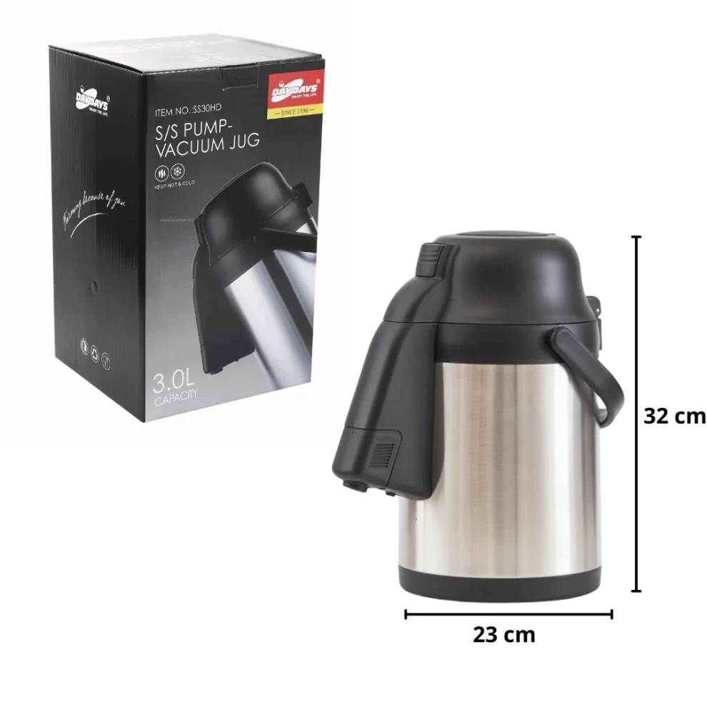 Keep your beverages at the perfect temperature with the DAYDAYS SS30HD Hot and Cold Vacuum Jug Thermos. Designed with advanced vacuum insulation, this jug keeps drinks hot for hours or refreshingly cold all day. Ideal for home, office, gatherings, travel, and hospitality use, it combines durability, convenience, and elegant design.