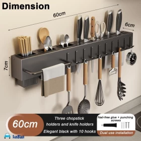 Upgrade your kitchen organization with the Wall Mounted Kitchen Utensil Shelf (60 x 7 x 6 cm) — a smart space-saving solution designed to keep your cooking essentials within easy reach.