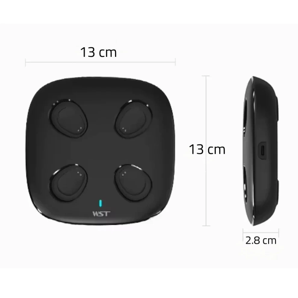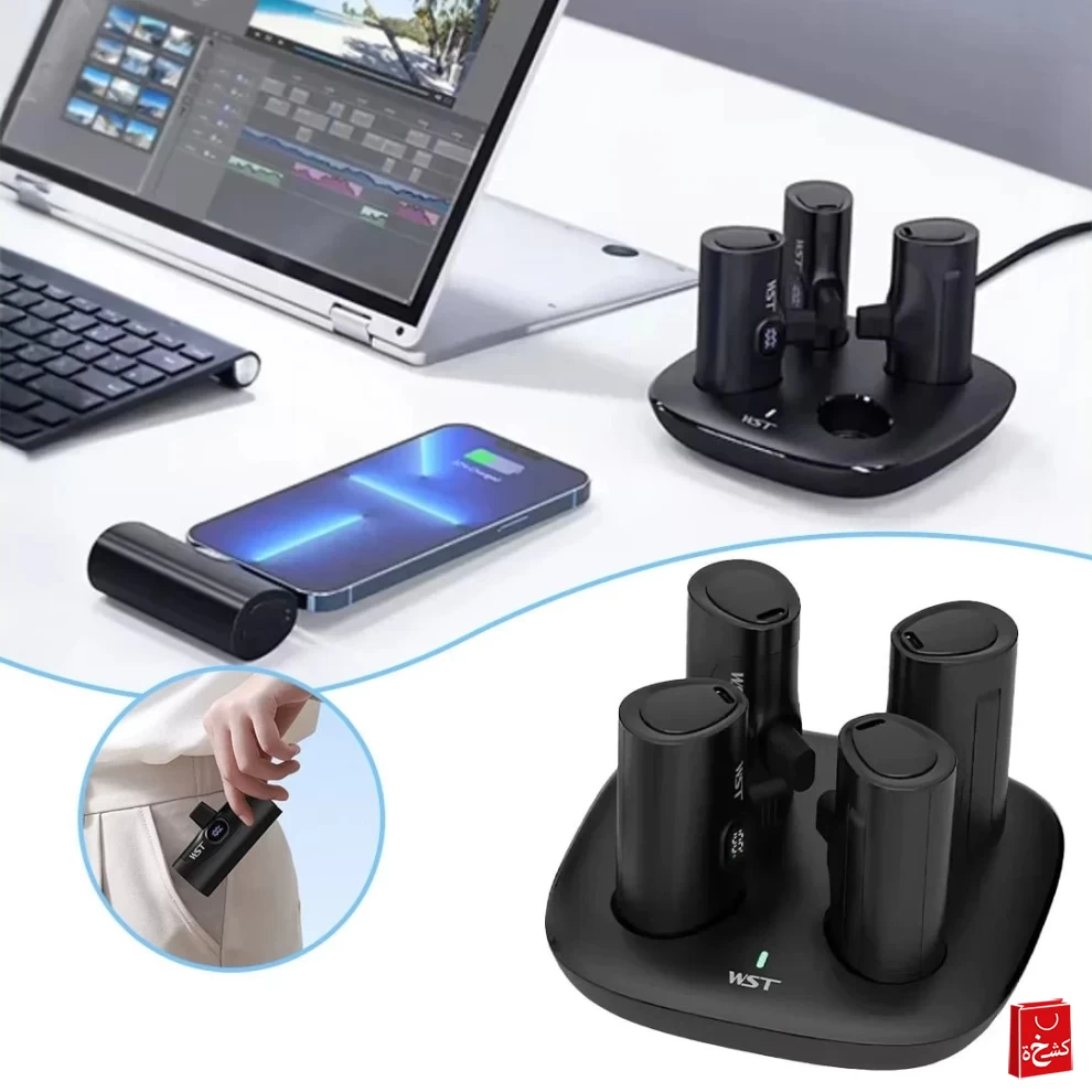 The WST 4-in-1 Docking Power Bank Station is a smart and convenient charging solution that includes four detachable 5000mAh power banks stored in a single charging dock. Each power bank can be removed and used on the go, then returned to the station for easy recharging.