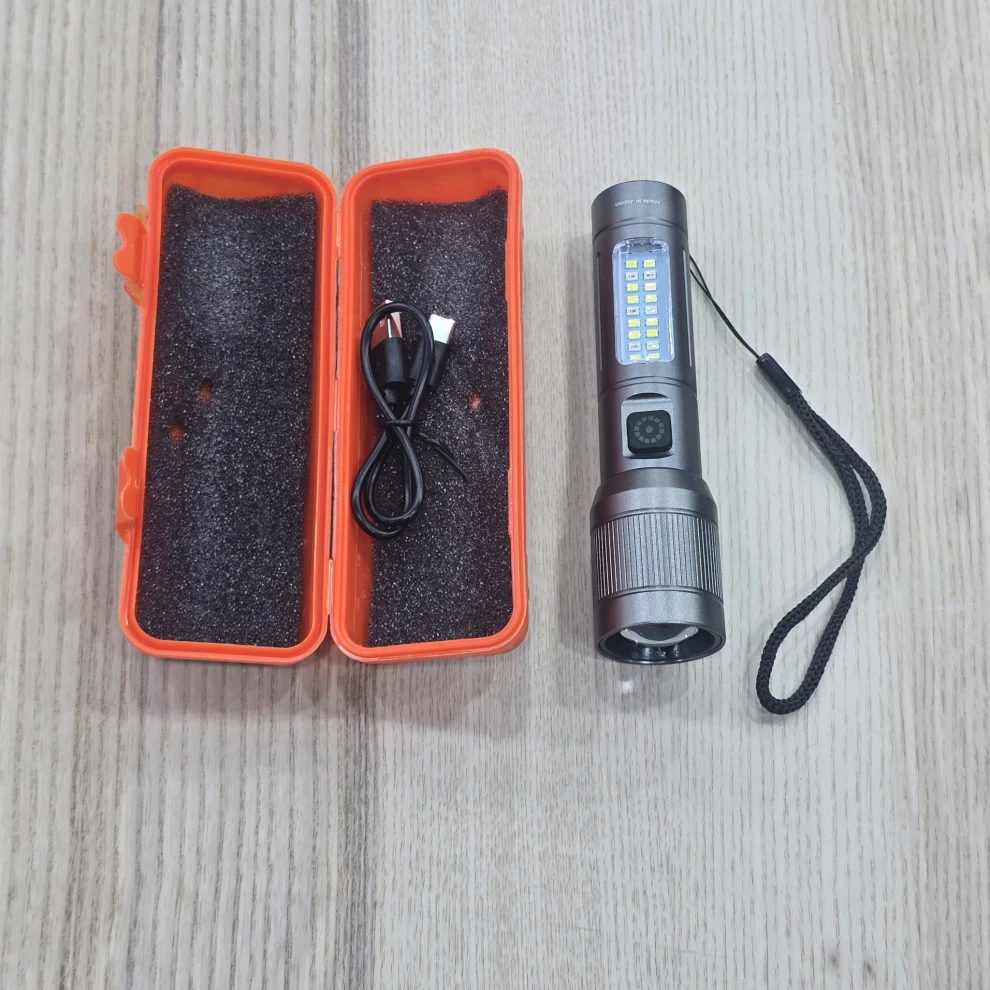 Stay prepared in any situation with this high-power rechargeable LED flashlight. Designed for outdoor adventures and emergency use, it delivers bright illumination, multiple light modes, and reliable performance in a compact, easy-to-carry design. Ideal for camping, hiking, fishing, and home use.