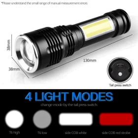 The COB LED Flashlight is designed with durable materials and efficient lighting technology, making it a reliable tool for daily tasks and emergency situations.