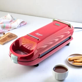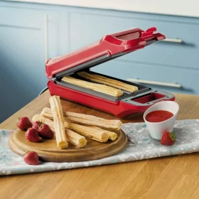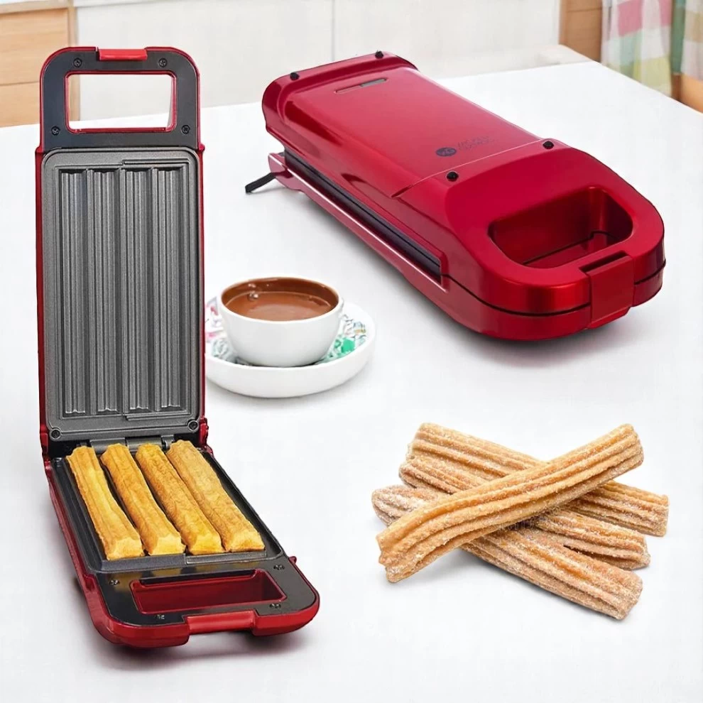Enjoy the delicious taste of freshly baked Spanish churros right at home with the Churros Maker! In just 5 minutes, you can prepare up to 4 crispy golden churros—perfect for sharing with family or indulging on your own. Dust with cinnamon sugar, dip in melted chocolate, and savor a true treat!